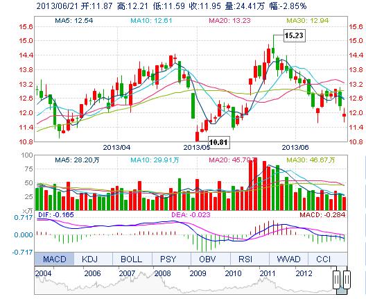 昨  收: 12.30 流通市值: 112.96億 市盈率TTM 21.10