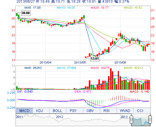 今  開: 18.49 成交量: 4.38萬(wàn)手 振  幅: 7.63%
