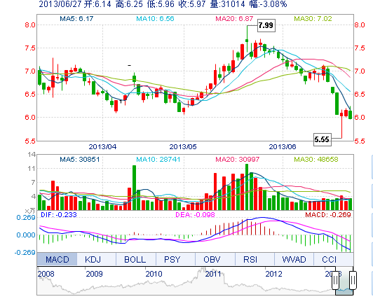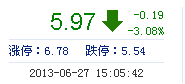 昨  收: 6.16 流通市值: 16.41億 市盈率TTM 36.47