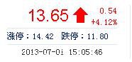 | 最 高: | 13.66 | 成交額: | 6241.34萬元 | 換手率: | 6.89% |