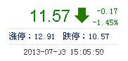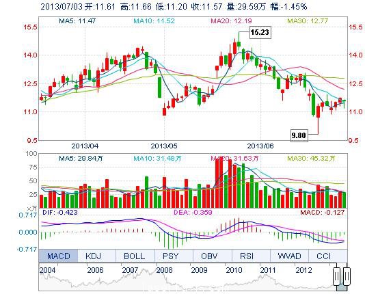 今開: 11.61 成交量: 29.59萬手 振幅: 3.92% 最高: 11.66 成交額: 3.40億元 換手率: 3.13% 最低: 11.20 總市值: 120.84億 市凈率: 3.49 昨收: 11.74 流通市值...