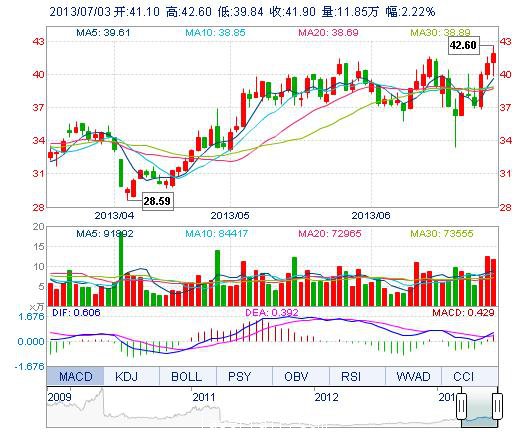 今開: 41.10 成交量: 11.85萬手 振幅: 6.73% 最高: 42.60 成交額: 4.91億元 換手率: 4.12% 最低: 39.84 總市值: 124.72億 市凈率: 8.72 昨收: 40.99 流通市值...