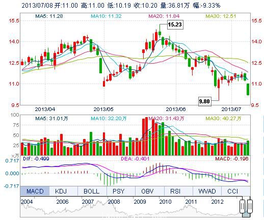 | 今 開(kāi): | 11.00 | 成交量: | 36.81萬(wàn)手 | 振 幅: | 7.20% |