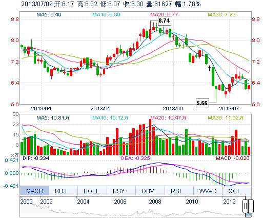 今開: 6.17 成交量: 6.16萬手 振幅: 4.04% 最高: 6.32 成交額: 3816.99萬元 換手率: 1.41% 最低: 6.07 總市值: 27.52億 市凈率: 1.97 昨收: 6.19 流通市值: ...