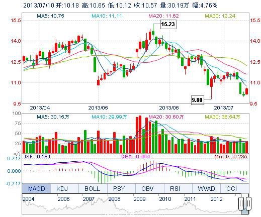 今開: 10.18 成交量: 30.19萬手 振幅: 5.25% 最高: 10.65 成交額: 3.13億元 換手率: 3.19% 最低: 10.12 總市值: 110.39億 市凈率: 3.19 昨收: 10.09 流通市值...