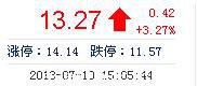 | 今 開: | 13.14 | 成交量: | 5.89萬手 | 振 幅: | 6.93% |