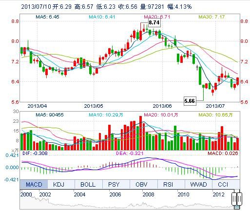 | 今 開: | 6.29 | 成交量: | 9.73萬手 | 振 幅: | 5.40% |