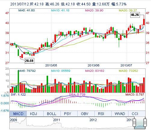 今開: 42.18 成交量: 12.68萬手 振幅: 9.69% 最高: 46.26 成交額: 5.65億元 換手率: 4.41% 最低: 42.18 總市值: 132.46億 市凈率: 9.26 昨收: 42.09 流通市值...