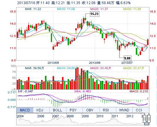 今  開(kāi): 11.40 成交量: 58.46萬(wàn)手 振  幅: 7.60%