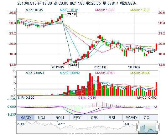 | 今 開: | 18.30 | 成交量: | 5.78萬手 | 振 幅: | 12.07% |