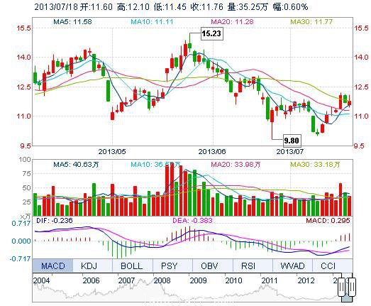 今開: 11.60 成交量: 35.25萬手 振幅: 5.56% 最高: 12.10 成交額: 4.17億元 換手率: 3.73% 最低: 11.45 總市值: 122.82億 市凈率: 3.54 昨收: 11.69 流通市值...
