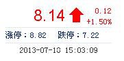 今開: 7.92 成交量: 48.11萬手 振幅: 8.48% 最高: 8.57 成交額: 3.96億元 換手率: 11.01% 最低: 7.89 總市值: 35.56億 市凈率: 2.54 昨收: 8.02 流通市值: 3...