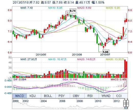 | 今 開: | 7.92 | 成交量: | 48.11萬手 | 振 幅: | 8.48% |