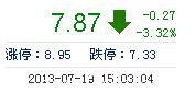 | 今 開: | 8.03 | 成交量: | 29.56萬手 | 振 幅: | 5.16% |