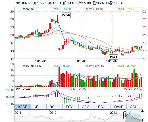 | 今 開: | 15.25 | 成交量: | 8.61萬手 | 振 幅: | 6.63% |