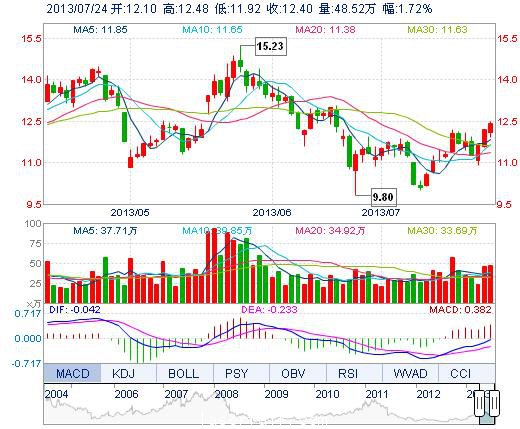 今開: 12.10 成交量: 48.52萬手 振幅: 4.59% 最高: 12.48 成交額: 5.93億元 換手率: 5.13% 最低: 11.92 總市值: 129.51億 市凈率: 3.74 昨收: 12.19 流通市值...