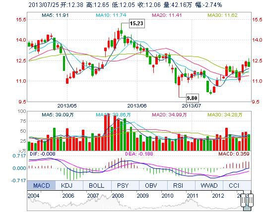 今開: 12.38 成交量: 42.16萬手 振幅: 4.84% 最高: 12.65 成交額: 5.20億元 換手率: 4.46% 最低: 12.05 總市值: 125.95億 市凈率: 3.63 昨收: 12.40 流通市值...