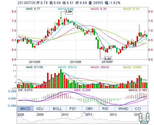 | 最 高: | 6.84 | 成交額: | 2323.63萬(wàn)元 | 換手率: | 1.27% |