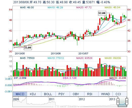 | 最 高: | 50.30 | 成交額: | 2.68億元 | 換手率: | 1.88% |