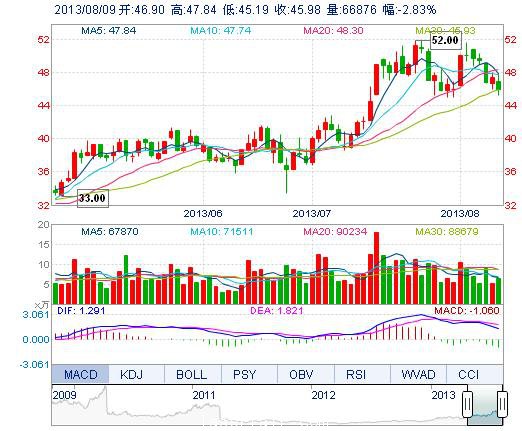 今開: 46.90 成交量: 6.69萬手 振幅: 5.60% 最高: 47.84 成交額: 3.08億元 換手率: 2.33% 最低: 45.19 總市值: 136.86億 市凈率: 9.17 昨收: 47.32 流通市值...