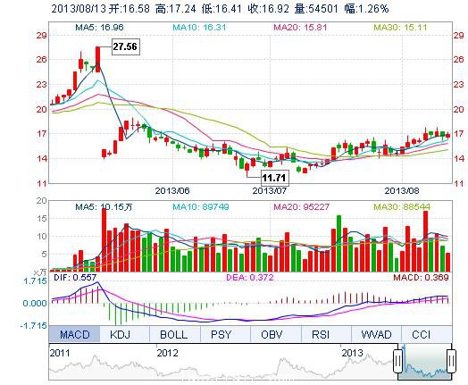 | 最 高: | 17.24 | 成交額: | 9197.36萬元 | 換手率: | 7.96% |