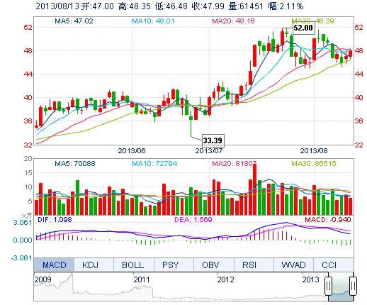 | 最 高: | 48.35 | 成交額: | 2.93億元 | 換手率: | 2.14% |