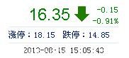 | 今 開: | 16.25 | 成交量: | 3.33萬手 | 振 幅: | 2.97% |