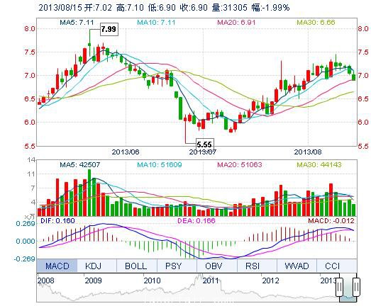 | 今 開: | 7.02 | 成交量: | 3.13萬手 | 振 幅: | 2.84% |