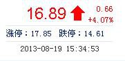 | 最 高: | 16.97 | 成交額: | 7230.01萬元 | 換手率: | 6.34% |