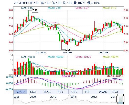 今開: 6.60 成交量: 4.93萬手 振幅: 6.38% 最高: 7.03 成交額: 3392.51萬元 換手率: 1.79% 最低: 6.60 總市值: 20.01億 市凈率: 3.18 昨收: 6.74 流通市值: ...
