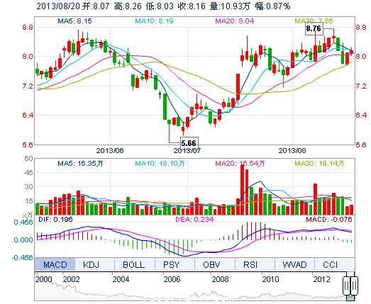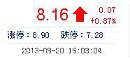 | 最 高: | 8.26 | 成交額: | 8913.27萬(wàn)元 | 換手率: | 2.50% |