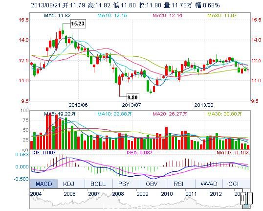 今開: 11.79 成交量: 11.73萬手 振幅: 1.88% 最高: 11.82 成交額: 1.37億元 換手率: 1.24% 最低: 11.60 總市值: 123.24億 市凈率: 3.56 昨收: 11.72 流通市值...