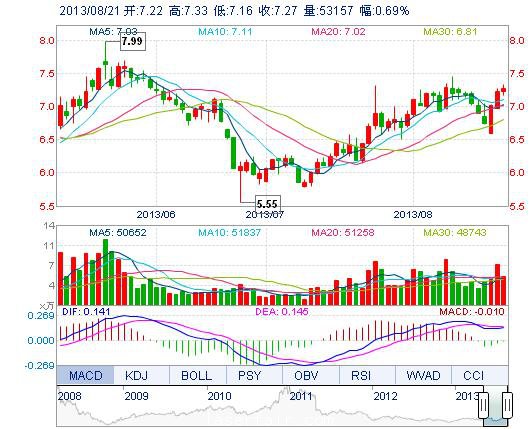 | 今 開: | 7.22 | 成交量: | 5.32萬手 | 振 幅: | 2.35% |