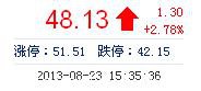 | 最 高: | 48.28 | 成交額: | 3.87億元 | 換手率: | 2.83% |