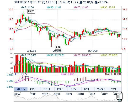 今開(kāi): 11.77 成交量: 24.01萬(wàn)手 振幅: 2.04% 最高: 11.78 成交額: 2.80億元 換手率: 2.54% 最低: 11.54 總市值: 122.40億 市凈率: 3.65 昨收: 11.75 流通市值...