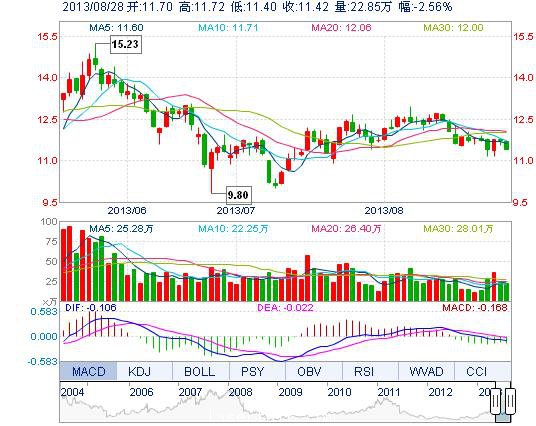 今開: 11.70 成交量: 22.85萬手 振幅: 2.73% 最高: 11.72 成交額: 2.64億元 換手率: 2.42% 最低: 11.40 總市值: 119.27億 市凈率: 3.56 昨收: 11.72 流通市值...