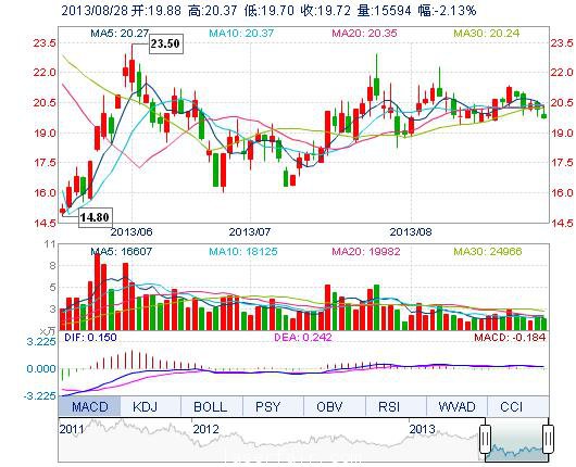 | 今 開: | 19.88 | 成交量: | 1.56萬手 | 振 幅: | 3.33% |