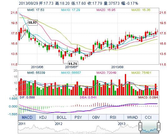 | 最 高: | 18.20 | 成交額: | 6713.50萬(wàn)元 | 換手率: | 5.49% |