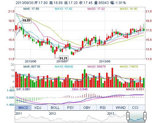 | 今 開: | 17.80 | 成交量: | 8.50萬(wàn)手 | 振 幅: | 9.50% |