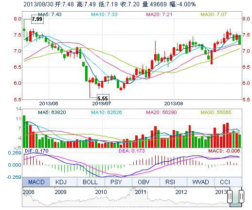 今開: 7.48 成交量: 4.97萬(wàn)手 振幅: 4.00% 最高: 7.49 成交額: 3633.12萬(wàn)元 換手率: 1.81% 最低: 7.19 總市值: 20.52億 市凈率: 3.35 昨收: 7.50 流通市值: ...