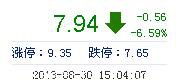 今開: 8.49 成交量: 25.78萬手 振幅: 8.47% 最高: 8.64 成交額: 2.14億元 換手率: 5.90% 最低: 7.92 總市值: 34.68億 市凈率: 2.47 昨收: 8.50 流通市值: 34...