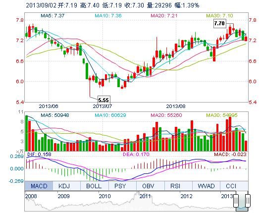 最  高: 7.40 成交額: 2141.56萬(wàn)元 換手率: 1.07%