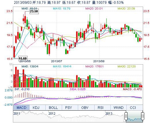 | 今 開: | 18.79 | 成交量: | 1.01萬手 | 振 幅: | 1.58% |