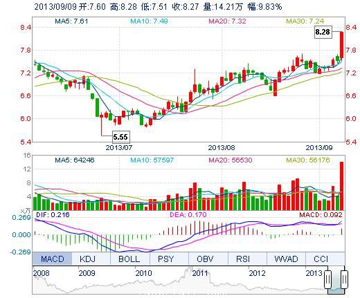 今  開: 7.60 成交量: 14.21萬(wàn)手 振  幅: 10.23%