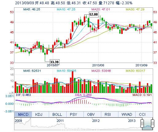 今開: 48.48 成交量: 7.13萬手 振幅: 4.50% 最高: 48.50 成交額: 3.36億元 換手率: 2.48% 最低: 46.31 總市值: 141.39億 市凈率: 9.47 昨收: 48.62 流通市值...
