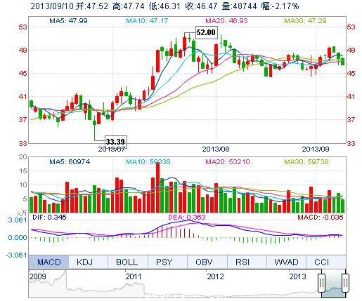 | 最 高: | 47.74 | 成交額: | 2.29億元 | 換手率: | 1.70% |