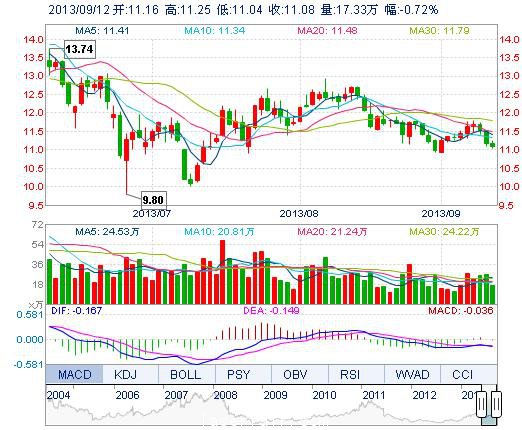 今開: 11.16 成交量: 17.33萬手 振幅: 1.88% 最高: 11.25 成交額: 1.93億元 換手率: 1.83% 最低: 11.04 總市值: 115.72億 市凈率: 3.45 昨收: 11.16 流通市值...
