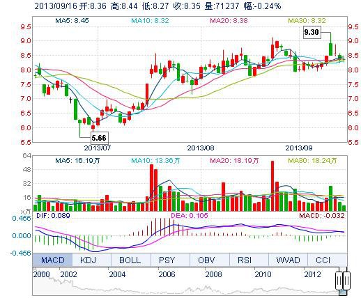 今開: 8.36 成交量: 7.12萬手 振幅: 2.03% 最高: 8.44 成交額: 5950.68萬元 換手率: 1.63% 最低: 8.27 總市值: 36.47億 市凈率: 2.59 昨收: 8.37 流通市值: ...