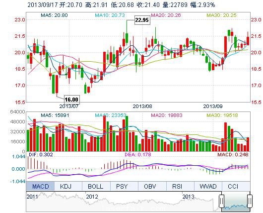 今開: 20.70 成交量: 2.28萬手 振幅: 5.92% 最高: 21.91 成交額: 4854.29萬元 換手率: 10.52% 最低: 20.68 總市值: 14.98億 市凈率: 5.17 昨收: 20.79 流通市...