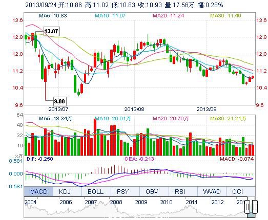 | 今 開: | 10.86 | 成交量: | 17.56萬手 | 振 幅: | 1.74% |